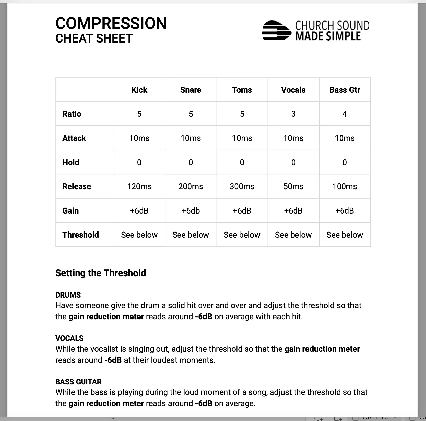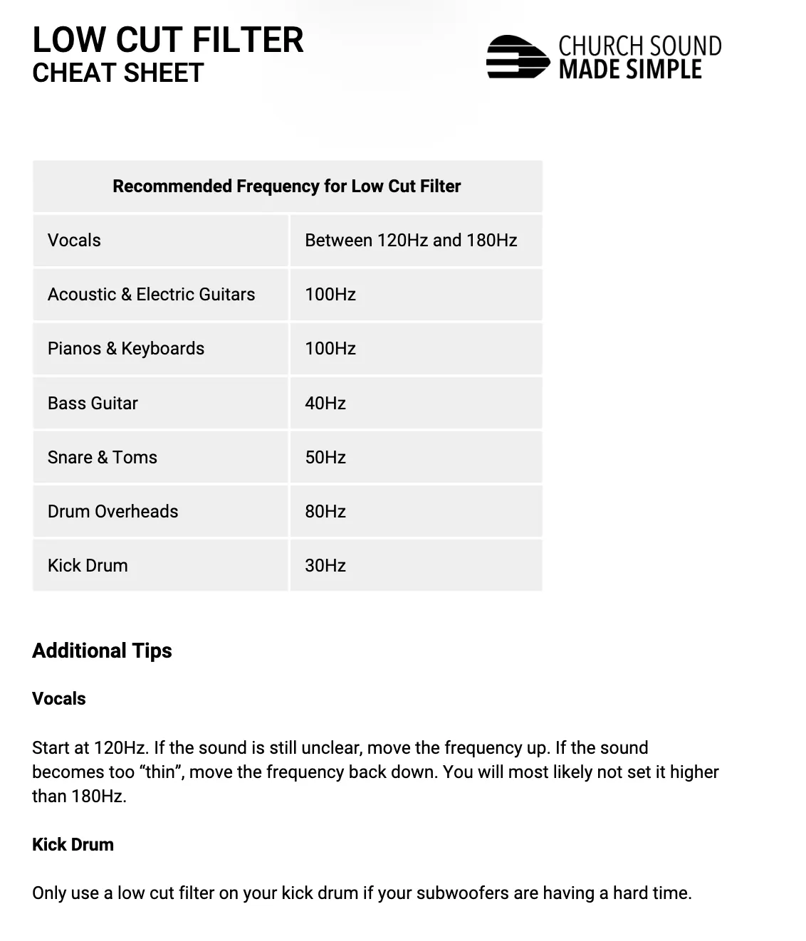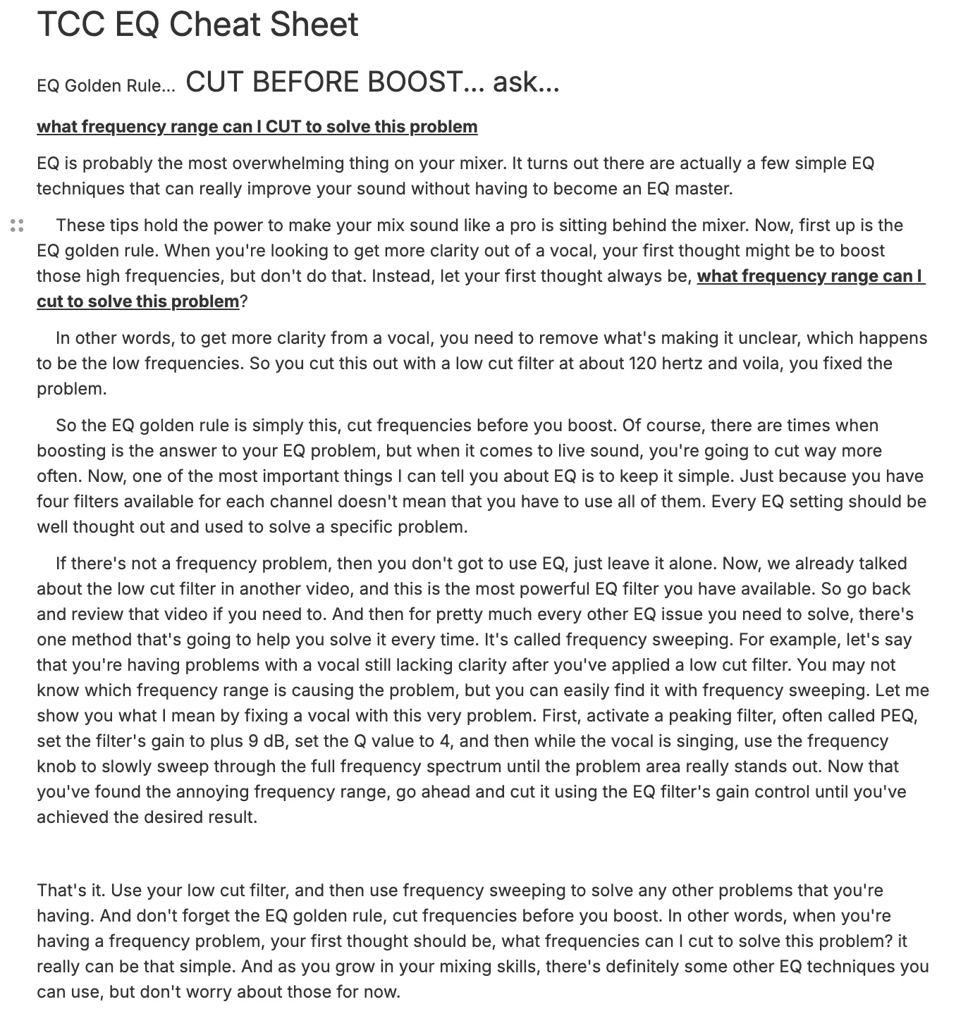A collection of Mixing Cheat Sheets and Notes for Great Sound